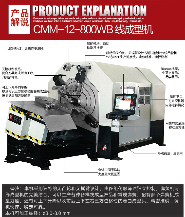 2、可加工4毫米鋼絲或6毫米軟線,目前成為國(guó)內(nèi)多家知名大型彈簧和線材成型企業(yè)必備的生產(chǎn)利器。