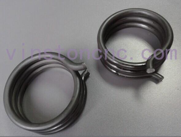 汽車張緊器是皮帶傳動(dòng)系統(tǒng)上常用的保持裝置,其特點(diǎn)是保持皮帶在傳動(dòng)過程中可以擁有適當(dāng)?shù)膹埦o力,從而避免皮帶打滑的作用。張緊器里面有個(gè)扭簧,線徑一般是5.0-7.5mm,是油淬火鋼絲的材料,彈簧兩端的直線位非常短。如上圖所示。